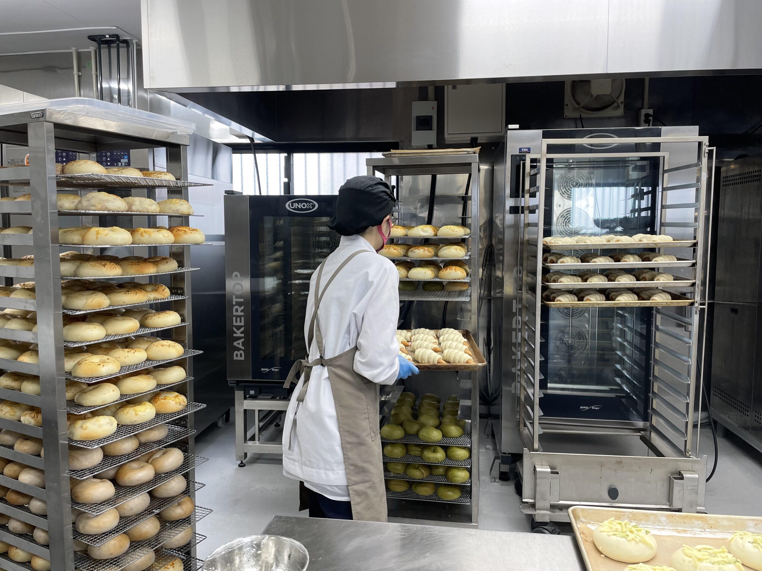 セントラルキッチンであなたが作った「サイコロ食パン」やベーグル、ハンバーガーが既存店で販売されます。